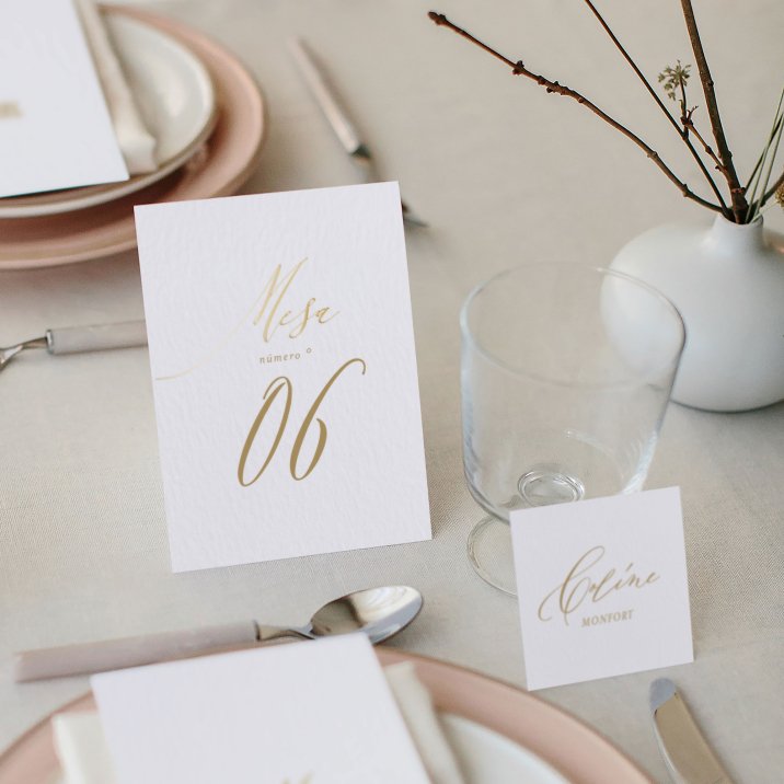 Ponlo en el centro de las mesas, ¡que se vea bien! Tus invitados encontrarán enseguida su sitio después de localizar su mesa en el seating plan.