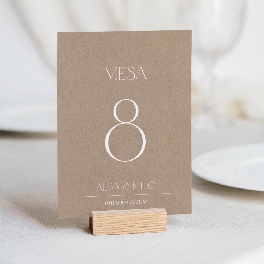 Ponlo en el centro de las mesas, ¡que se vea bien! Tus invitados encontrarán enseguida su sitio después de localizar su mesa en el seating plan.