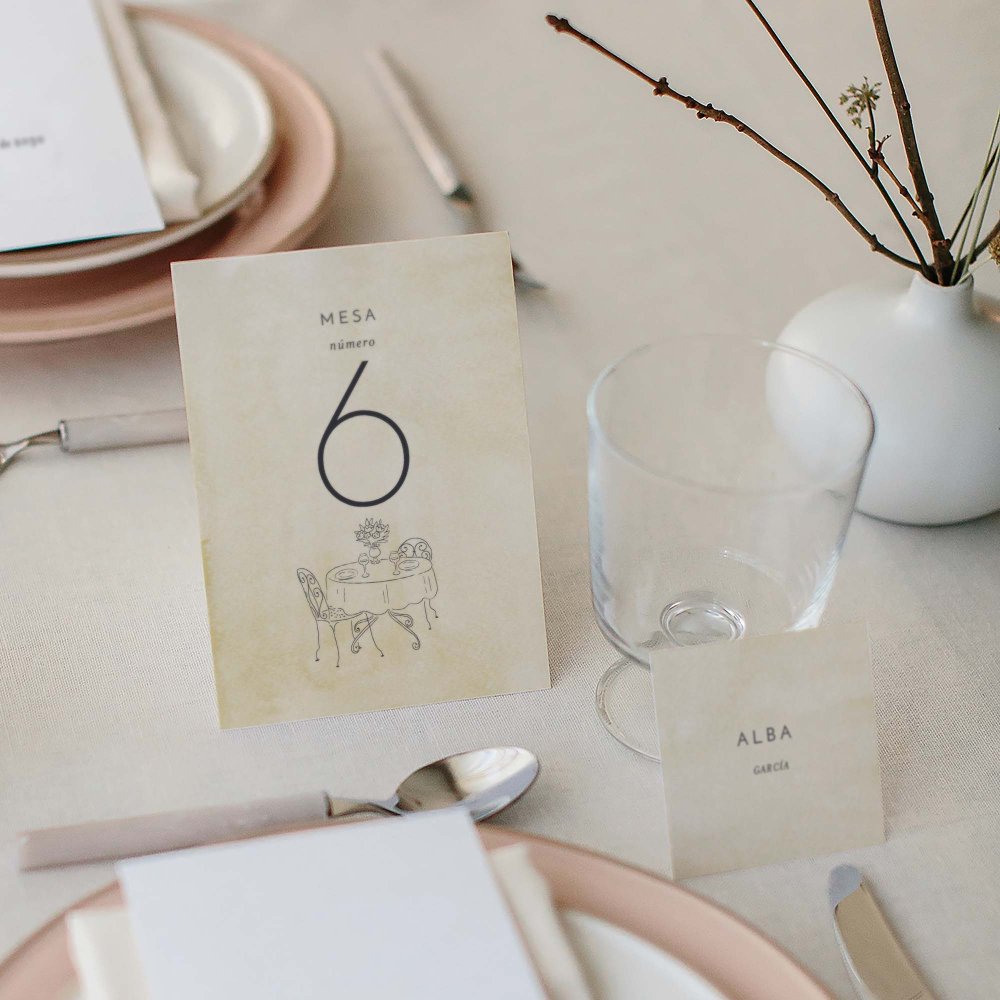Ponlo en el centro de las mesas, ¡que se vea bien! Tus invitados encontrarán enseguida su sitio después de localizar su mesa en el seating plan.