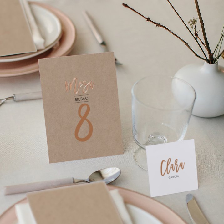 Ponlo en el centro de las mesas, ¡que se vea bien! Tus invitados encontrarán enseguida su sitio después de localizar su mesa en el seating plan.