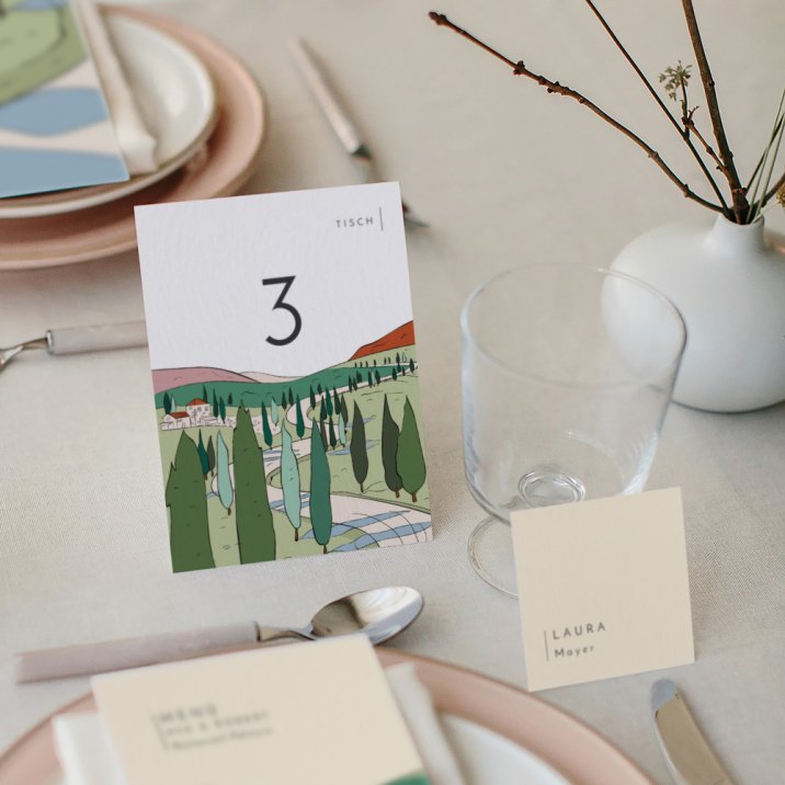 Ponlo en el centro de las mesas, ¡que se vea bien! Tus invitados encontrarán enseguida su sitio después de localizar su mesa en el seating plan.