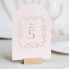 Para guiar a tus invitados coloca este bonito número de mesa en formato de arco.