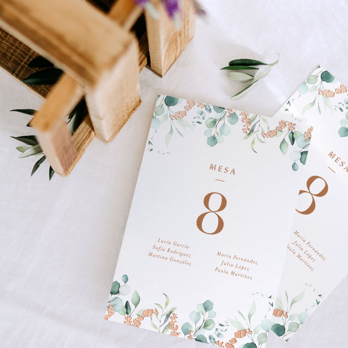 Tantas hojas como mesas, que colocareis en la entrada de la sala, para ayudar a tus invitados a encontrar su mesa mas fácilmente.