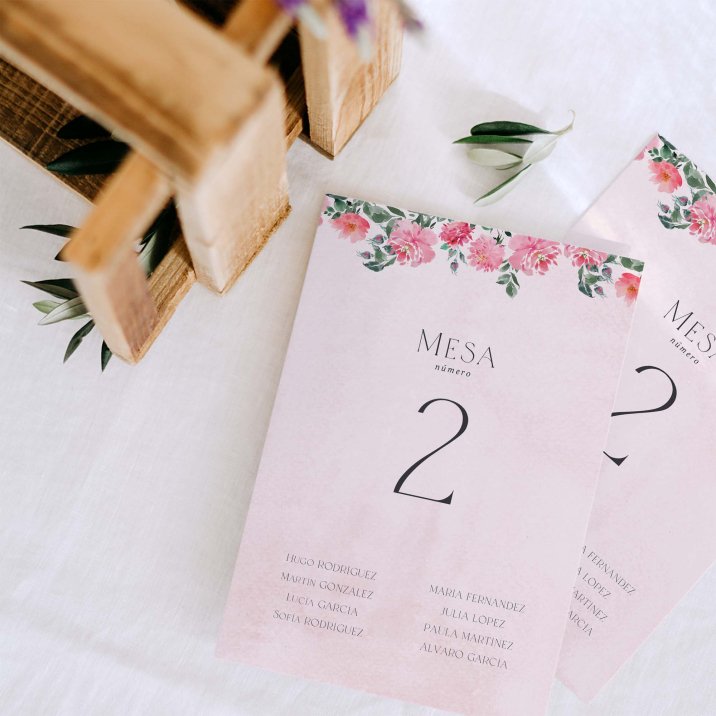 Tantas hojas como mesas, que colocareis en la entrada de la sala, para ayudar a tus invitados a encontrar su mesa mas fácilmente.