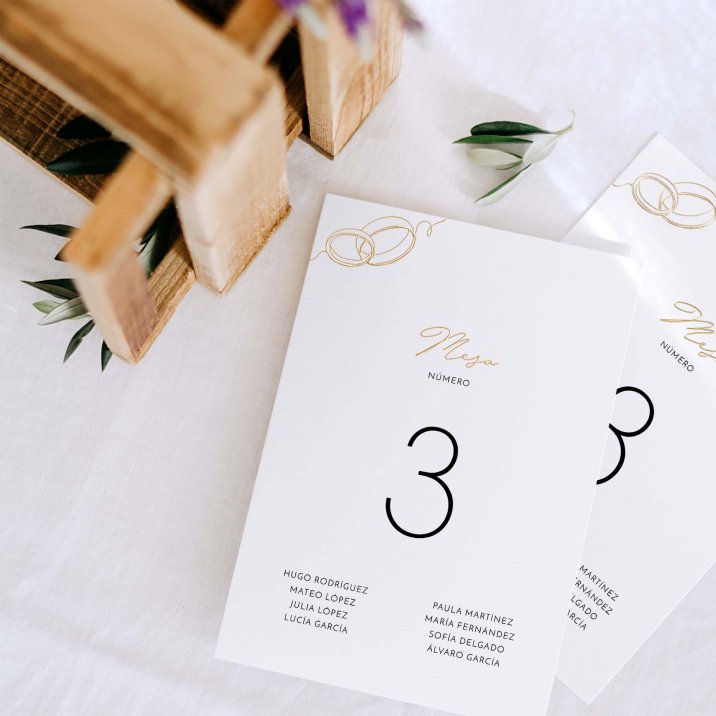 Tantas hojas como mesas, que colocareis en la entrada de la sala, para ayudar a tus invitados a encontrar su mesa mas fácilmente.
