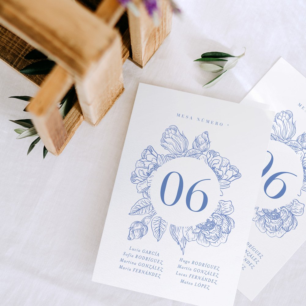 Tantas hojas como mesas, que colocareis en la entrada de la sala, para ayudar a tus invitados a encontrar su mesa mas fácilmente.