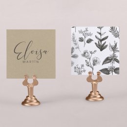 Truco: coloca tus tarjetas con chinchetas en un marco vintage dorado y apóyalo en un caballete.