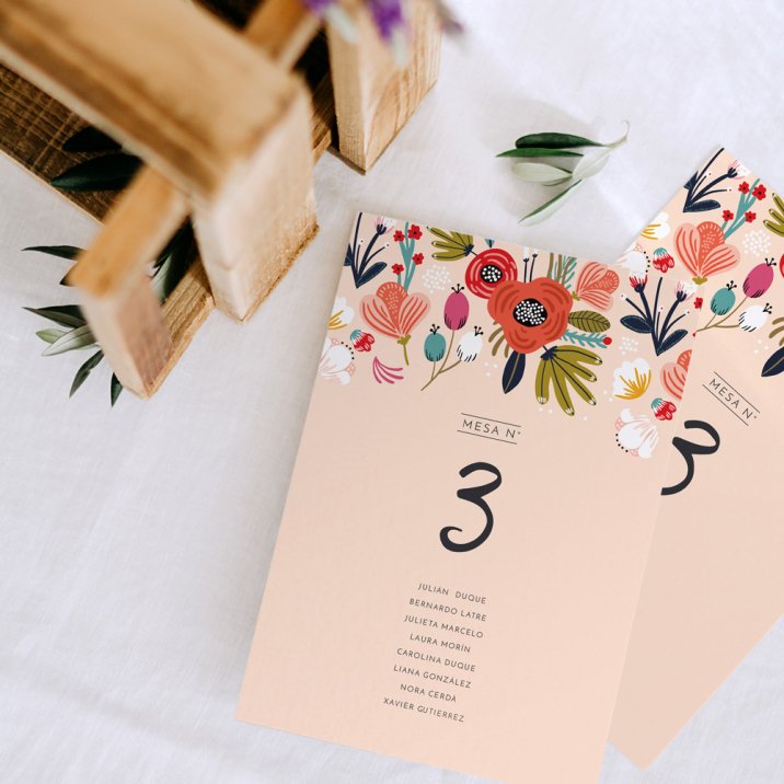Tantas hojas como mesas, que colocareis en la entrada de la sala, para ayudar a tus invitados a encontrar su mesa mas fácilmente.