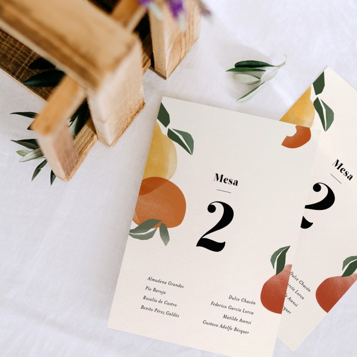 Tantas hojas como mesas, que colocareis en la entrada de la sala, para ayudar a tus invitados a encontrar su mesa mas fácilmente.