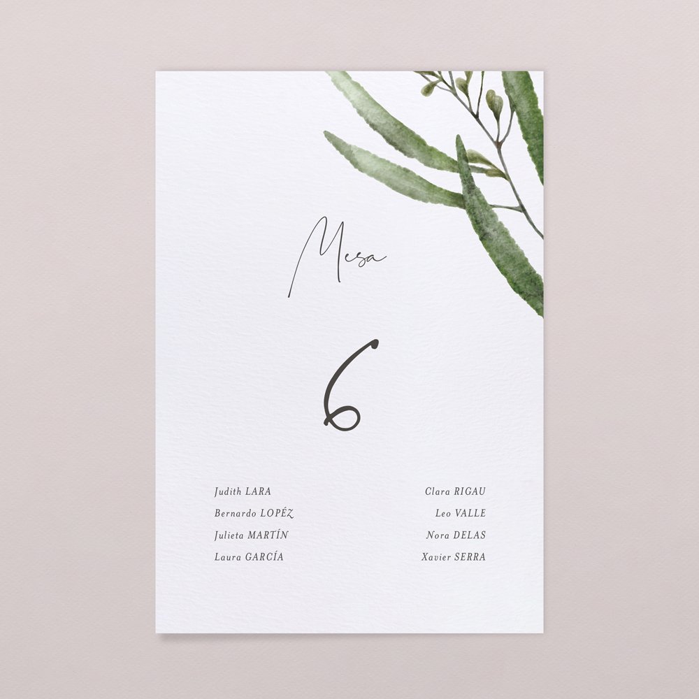 Tantas hojas como mesas, que colocareis en la entrada de la sala, para ayudar a tus invitados a encontrar su mesa mas fácilmente.