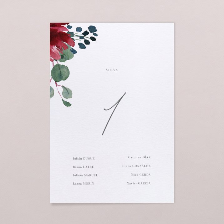 Tantas hojas como mesas, que colocareis en la entrada de la sala, para ayudar a tus invitados a encontrar su mesa mas fácilmente.
