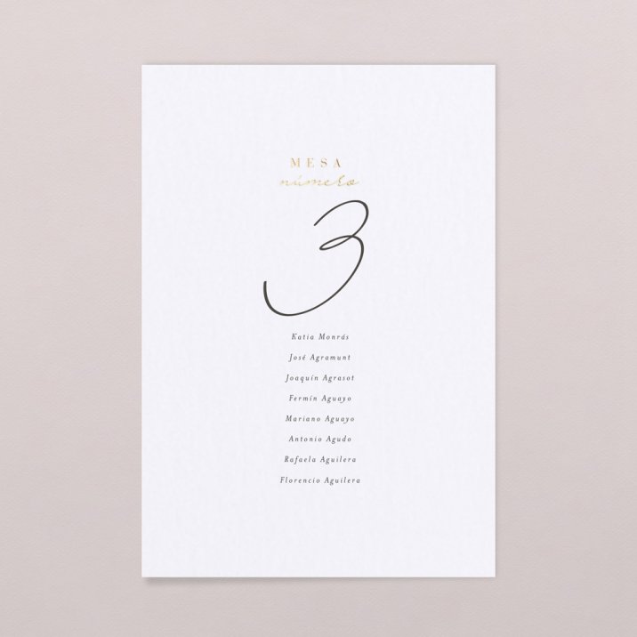 Hoja grande con los nombres de los invitados y sus respectivas mesas. Una hoja por mesa, cada una con su nombre (si tenéis un tema, como por ejemplo canciones, flores, lugares...), y la lista de las personas de esta mesa.