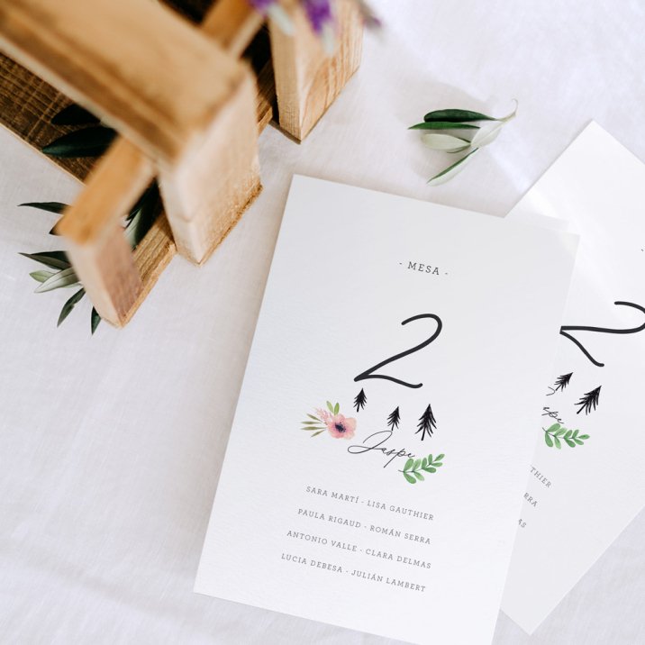 Tantas hojas como mesas, que colocareis en la entrada de la sala, para ayudar a tus invitados a encontrar su mesa mas fácilmente.