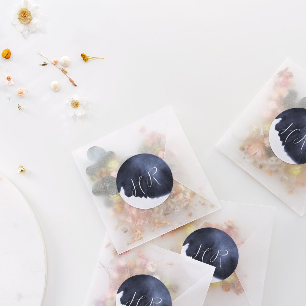 Etiqueta autoadhesiva para cerrar tus sobres, regalitos para los invitados, las bolsitas de arroz o de peladillas.