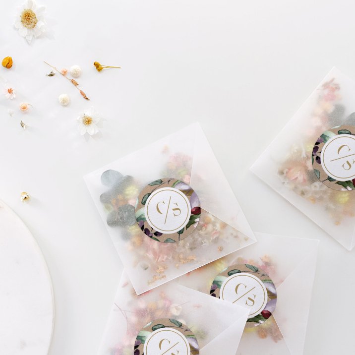 Etiqueta autoadhesiva para cerrar tus sobres, regalitos para los invitados, las bolsitas de arroz o de peladillas.