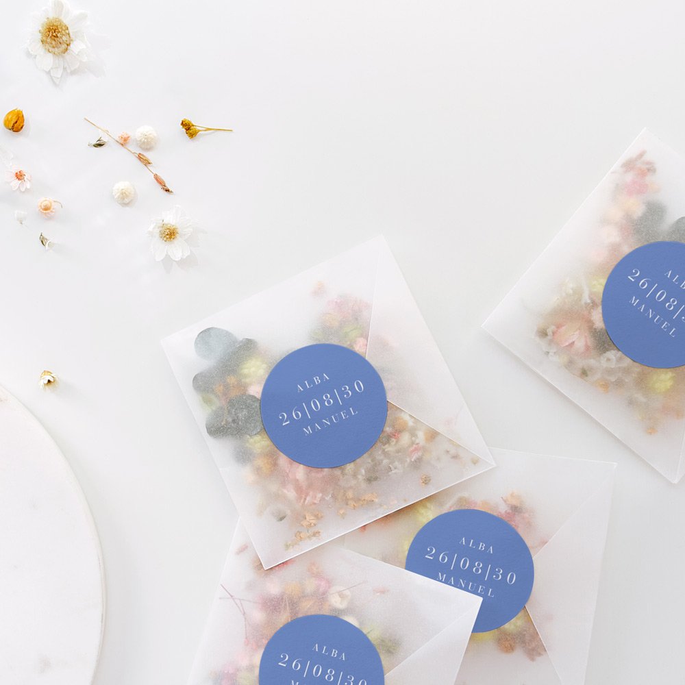 Etiqueta autoadhesiva para cerrar tus sobres, regalitos para los invitados, las bolsitas de arroz o de peladillas.