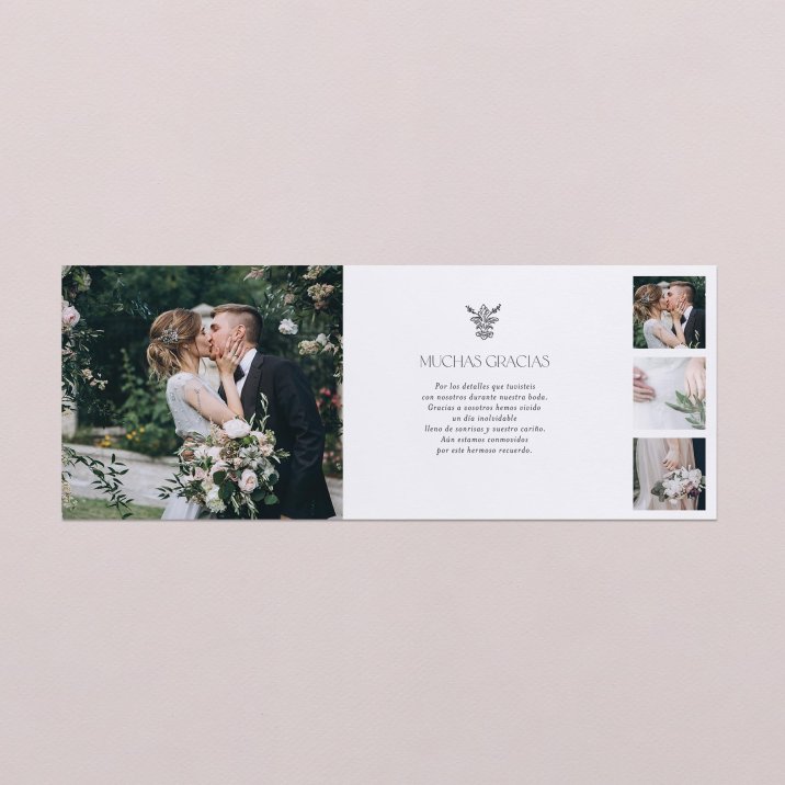 Agradece a tu familia y amigos su presencia en vuestro día con esta bonita tarjeta de agradecimiento de boda. En gran formato horizontal que se puede personalizar tanto en la cara como en el dorso con vuestra foto y el mensaje que queráis transmitir.