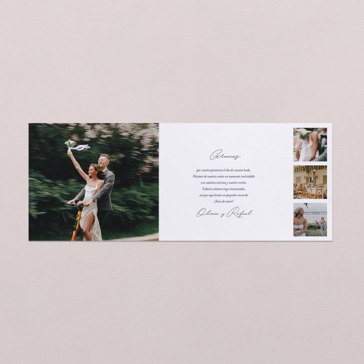 Agradece a tu familia y amigos su presencia en vuestro día con esta bonita tarjeta de agradecimiento de boda. En gran formato horizontal que se puede personalizar tanto en la cara como en el dorso con vuestra foto y el mensaje que queráis transmitir.