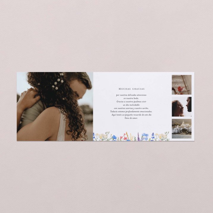Agradece a tu familia y amigos su presencia en vuestro día con esta bonita tarjeta de agradecimiento de boda. En gran formato horizontal que se puede personalizar tanto en la cara como en el dorso con vuestra foto y el mensaje que queráis transmitir.