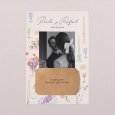 - Ilustraciones: pájaro, paloma, candelabros, velas, copa de vino, jarrón, ramo, flores, uva, pera