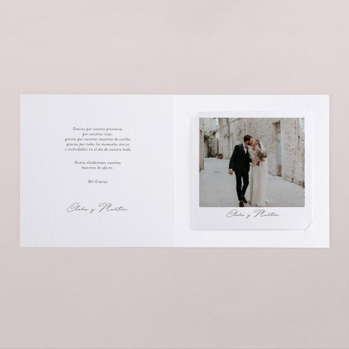 La polaroid (no magnetizada) se coloca en el interior del díptico de la tarjeta.