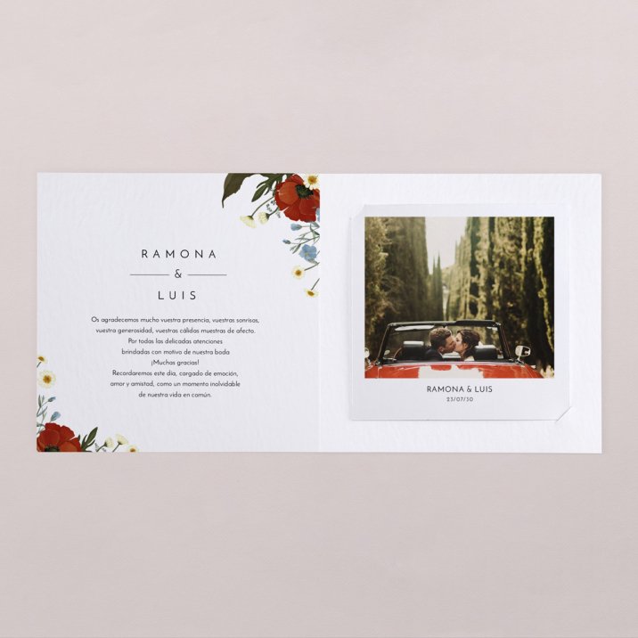 La polaroid (no magnetizada) se coloca en el interior del díptico de la tarjeta.
