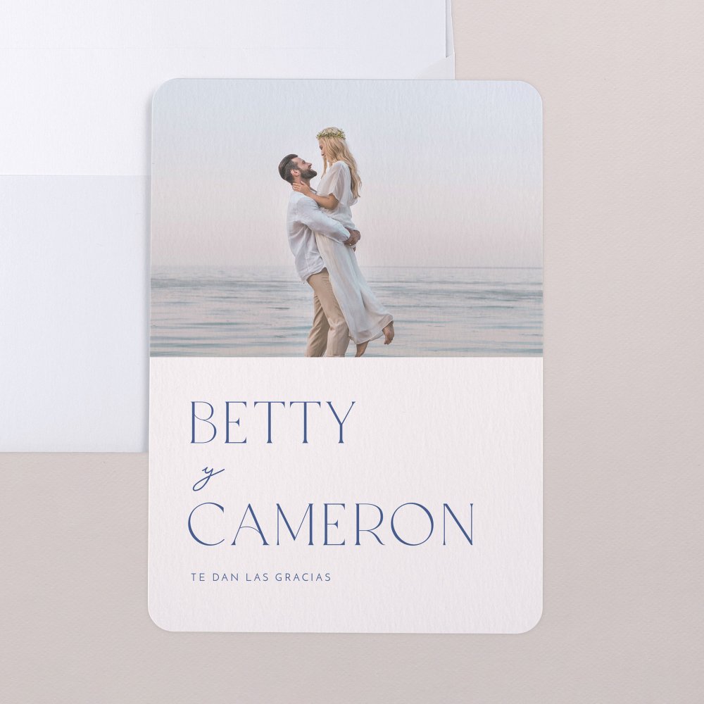 Imprimiremos vuestras fotos en la cara y el texto en el dorso de vuestra tarjeta de agradecimiento.