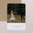 Imprimiremos vuestras fotos en la cara y el texto en el dorso de vuestra tarjeta de agradecimiento.