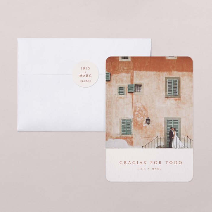 Una tarjeta de agradecimiento como recuerdo de vuestra boda con vuestras mejores fotos. El regalo ideal para agradecer a familia y amigos y recordarles los grandes momentos vividos y compartidos.