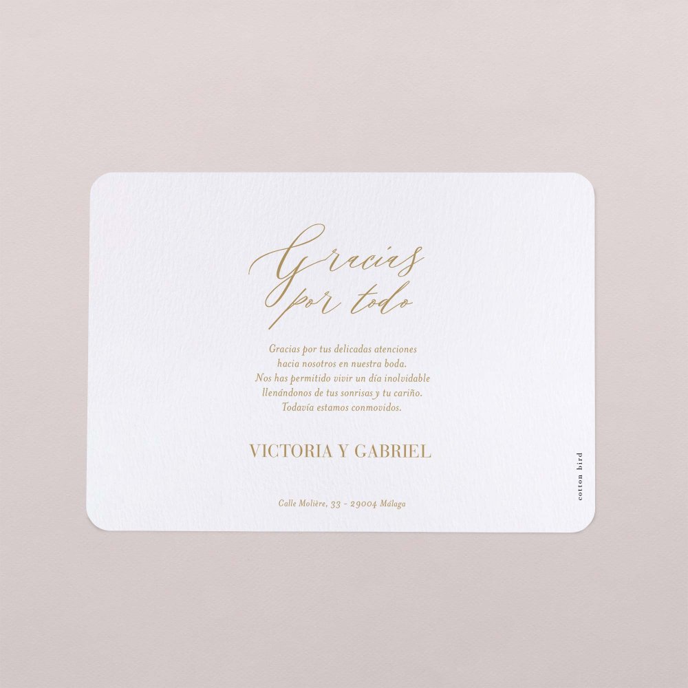 Una tarjeta de agradecimiento como recuerdo de vuestra boda