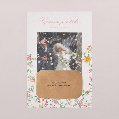 Es decir, te ofrecemos una idea que luego puedes modificar a placer hasta convertir tu tarjeta de agradecimiento a los invitados de tu boda en lo que prefieras. Añade una fotografía, cambia la tipografía, emplea los colores que hayas escogido para las invitaciones de boda y para toda la cartelería de la ceremonia, también disponibles en Cotton Bird, y transforma la tarjeta en el punto final de una jornada tan festiva como inolvidable.