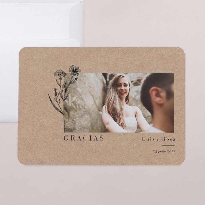 Una tarjeta de agradecimiento como recuerdo de vuestra boda