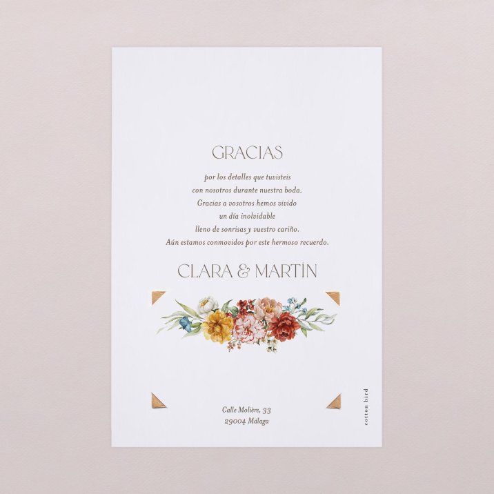 Acompañada con un sobre con semillas de flores silvestres ecológicas que les permitirá seguir recordando vuestro día tan especial.