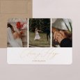 Esta tarjeta se personaliza tanto en el recto como en el verso con el mensaje y la foto que queráis. Las tarjetas y los sobres vienen listos para montar. Podrás instalarlos en las aberturas efectuadas sobre el papel.