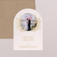 Agradece a tu familia y amigos su presencia en vuestro día con esta bonita tarjeta de agradecimiento de boda. En formato de arco que se puede personalizar tanto en la cara como en el dorso con vuestra foto y el mensaje que queráis transmitir.