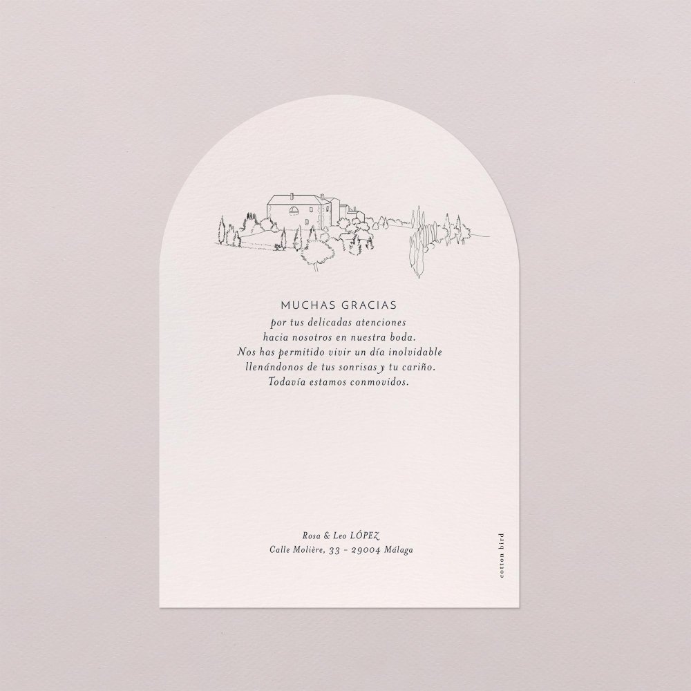 Agradece a tu familia y amigos su presencia en vuestro día con esta bonita tarjeta de agradecimiento de boda. En formato de arco que se puede personalizar tanto en la cara como en el dorso con vuestra foto y el mensaje que queráis transmitir.
