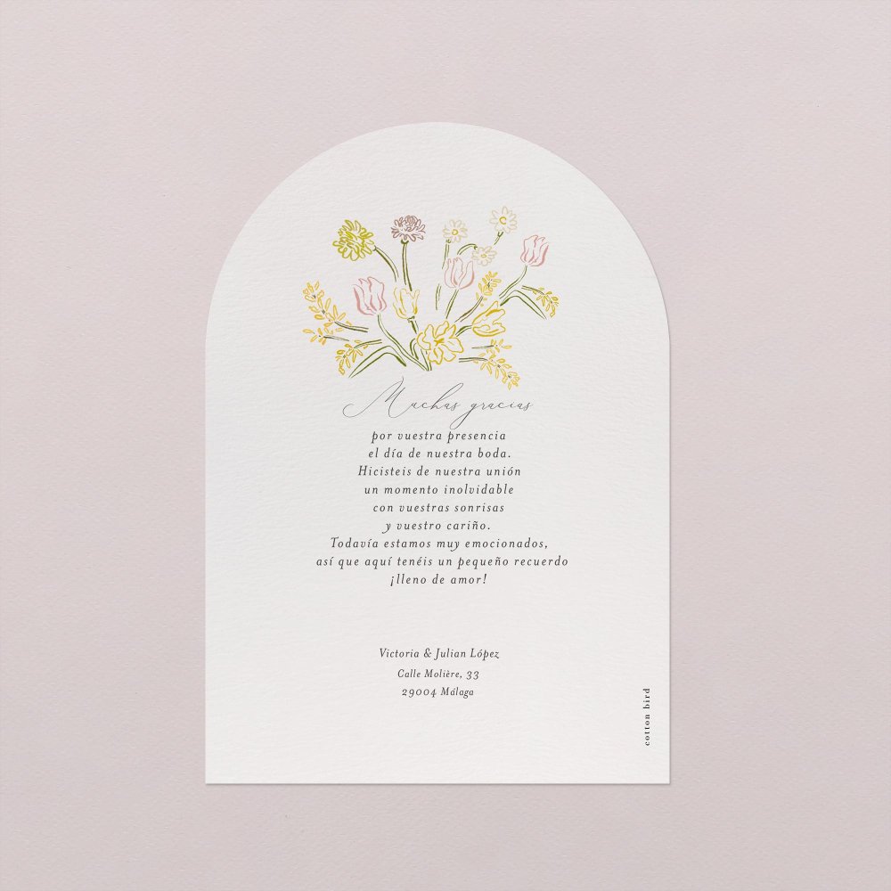 Agradece a tu familia y amigos su presencia en vuestro día con esta bonita tarjeta de agradecimiento de boda. En formato de arco que se puede personalizar tanto en la cara como en el dorso con vuestra foto y el mensaje que queráis transmitir.