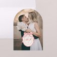 Agradece a tu familia y amigos su presencia en vuestro día con esta bonita tarjeta de agradecimiento de boda. En formato de arco que se puede personalizar tanto en la cara como en el dorso con vuestra foto y el mensaje que queráis transmitir.