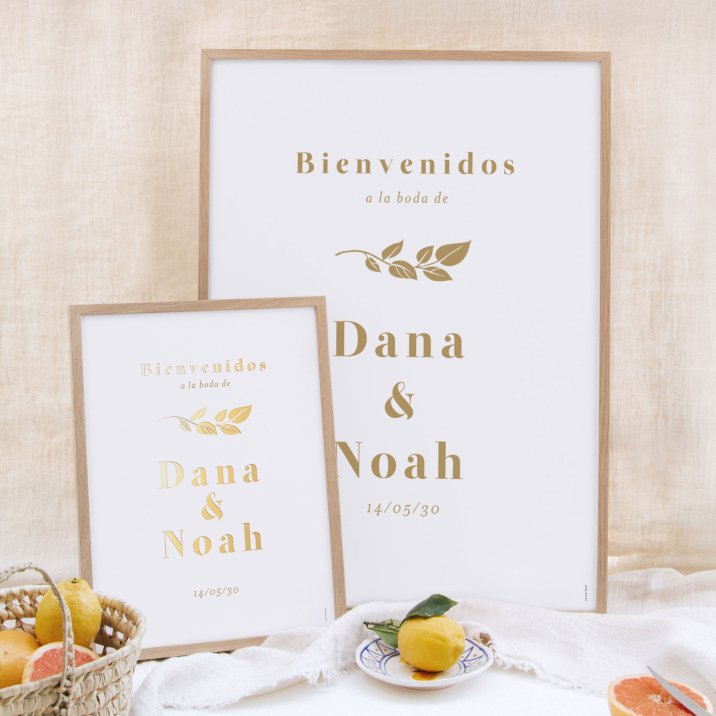 Decoración para el día de vuestra boda, da la bienvenida a vuestros invitados y ayúdalos a guiarse el día de vuestro enlace, elige los carteles personalizables.
