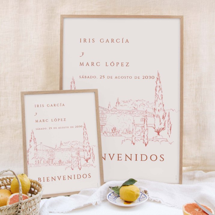 Decoración para el día de vuestra boda, da la bienvenida a vuestros invitados y ayúdalos a guiarse el día de vuestro enlace, elige los carteles personalizables.
