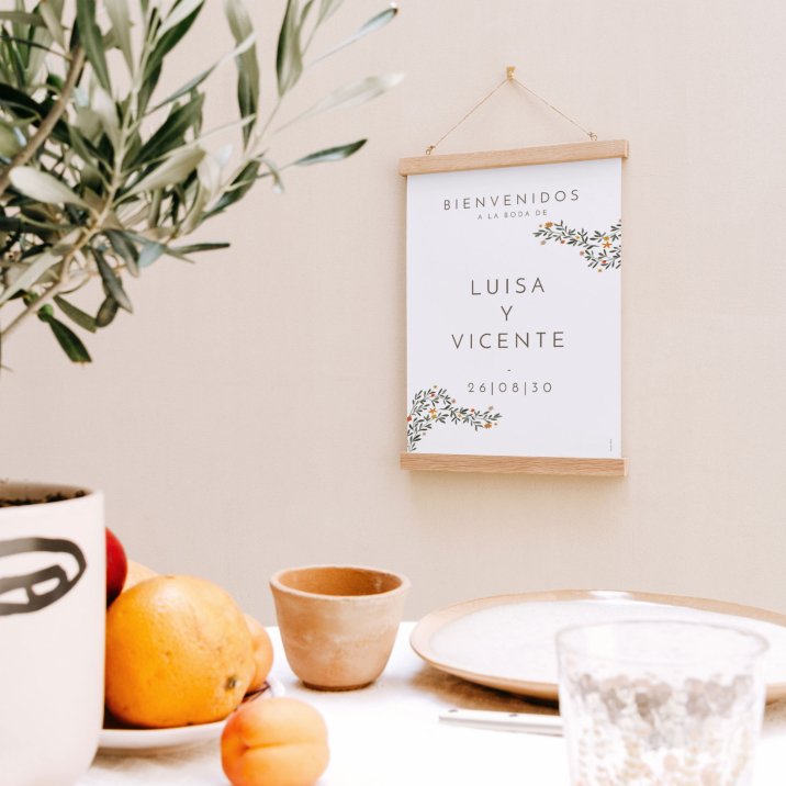 Decoración para el día de vuestra boda, da la bienvenida a vuestros invitados y ayúdalos a guiarse el día de vuestro enlace, elige los carteles personalizables.