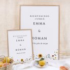 Decoración para el día de vuestra boda, da la bienvenida a vuestros invitados y ayúdalos a guiarse el día de vuestro enlace, elige los carteles personalizables.