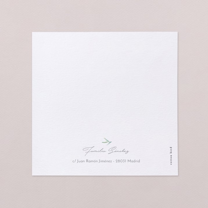 Invitación en formato díptico cuadrado, con cara y dorso, una parte para las fotos y la otra para incluir vuestro texto.