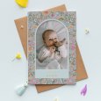 La invitación de bautizo Lajik se distingue por sus elegantes motivos florales y el nombre de tu pequeño realzado por un acabado dorado. Comparte tu alegría con tus seres queridos eligiendo esta invitación de diseño refinado, perfecta para celebrar el bautizo de tu hijo.