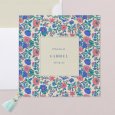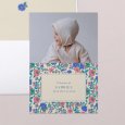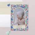 Celebra el bautizo de tu hijo con la invitación Siloé. Delicados motivos florales en acuarela en tonos rosa, azul y verde se ilustran en esta invitación, creando una atmósfera de tranquilidad y paz.