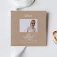 En la invitación de bautizo Marcelino, la foto de tu bebé se enmarca en un cálido diseño de estilo kraft, realzado por un delicado ángel ilustrado. Una creación elegante y atemporal, perfecta para invitar a tus seres queridos a este momento tan especial.