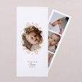 La invitación de bautizo Little Myosotis da todo el protagonismo a la foto de tu bebé, enmarcada por un delicado lazo beige y pequeñas flores de miosotis. Adornado con encantadores iconos que detallan la ceremonia, este diseño poético y dulce narrará con ternura este momento inolvidable.