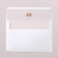 Inspirada en el motivo White Cashmere, la invitación de bautizo Hindi está impregnada de una esencia exótica. Una creación elegante adornada con detalles dorados que encantará y transportará a tus invitados a un lugar lejano.