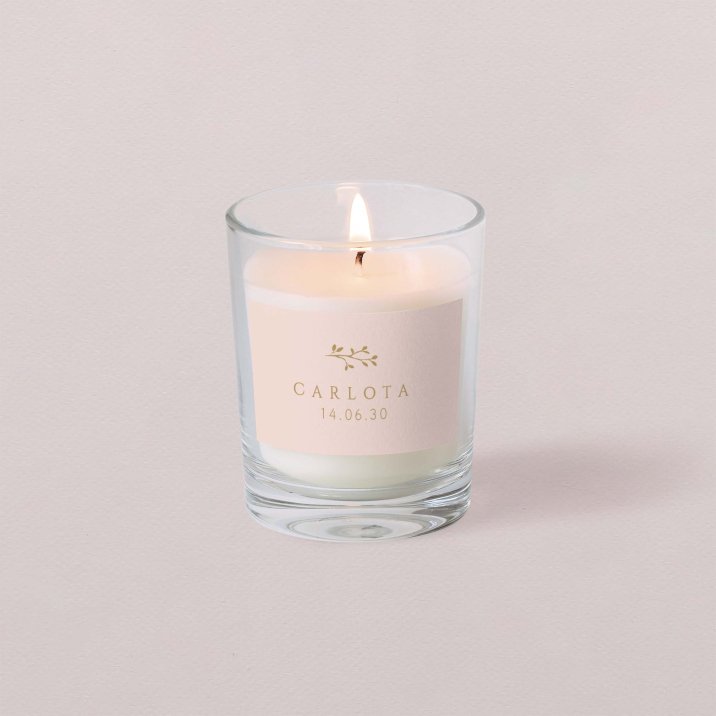 Podéis agradecer a vuestros seres queridos y amigos presentes en el bautizo de vuestro pequeño con esta vela personalizada. Su delicado perfume con toques frutales será un bonito recuerdo que podrán conservar vuestros invitados.