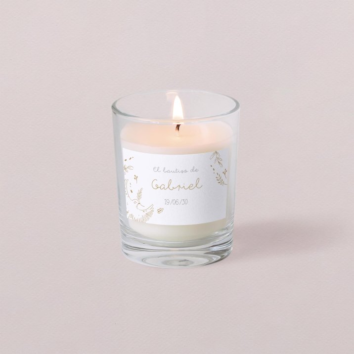 Podéis agradecer a vuestros seres queridos y amigos presentes en el bautizo de vuestro pequeño con esta vela personalizada. Su delicado perfume con toques frutales será un bonito recuerdo que podrán conservar vuestros invitados.